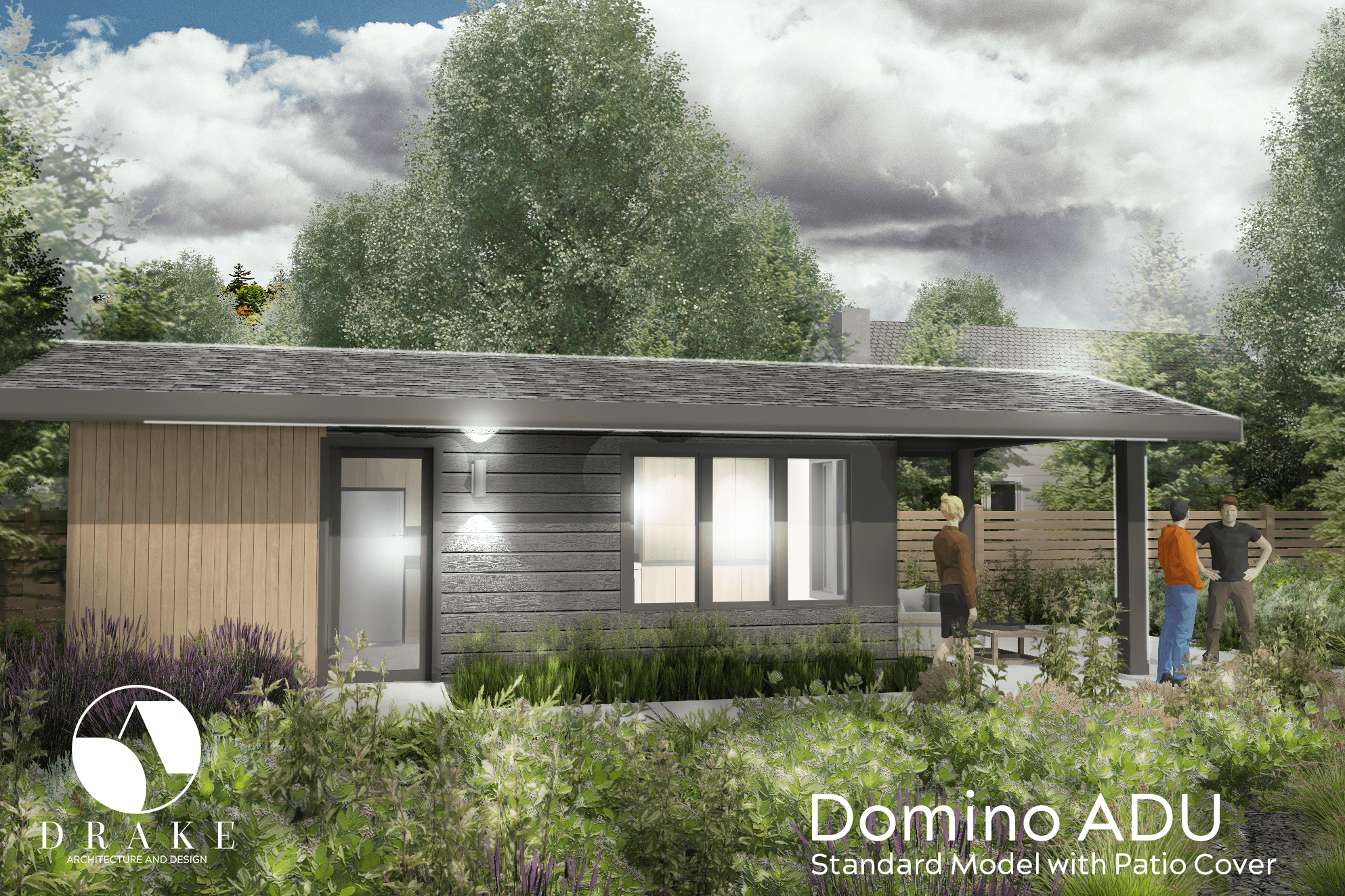 Exceptionally approachable with a focus on simplicity, Domino is designed to suit a variety of needs. Using standard materials and construction methods it enables homeowners to act as their own GC, saving money, and encouraging customization. Due to the small footprint it’s adaptable to many sites/conditions, and sized to enable additional construction methods (ie. prefabricated/modular). Abundant, thoughtfully placed windows introduce natural light on the interior, with the option to create more expansive openings to create a permeable edge. The design features a private bathroom and a versatile living area that can function as a kitchen, living room, bedroom, home office or rec space. Optional roof extensions create additional outdoor covered space. An more contemporary, shed roof design is also available. This model combines practicality and thoughtful design, making it widely adaptable for those looking for an ADU solution.
